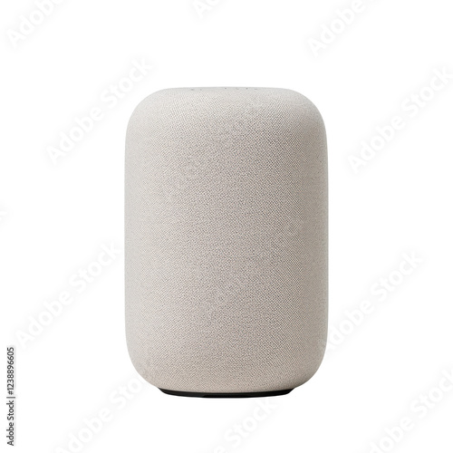 Modern smart speaker in soft fabric finish, perfect for home audio and smart home setup.