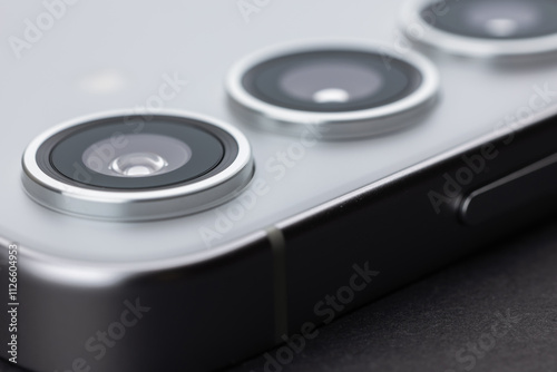 Modern smartphone camera lens, macro view. close up