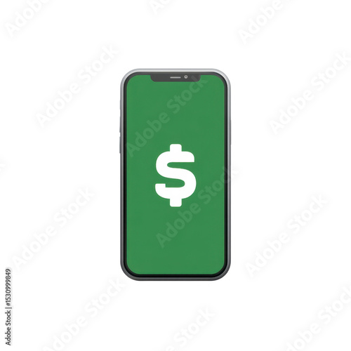 Modern Smartphone Displaying Dollar Sign on Green Background, Symbolizing Financial Technology and Digital Currency Concepts Transparent background or png
