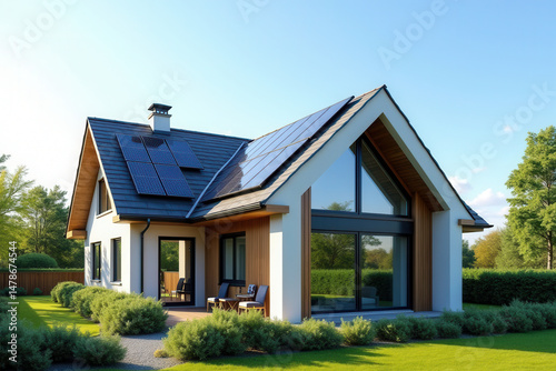 Modern Solar Powered House, Eco Friendly Sustainable Architecture, Clean Energy Living