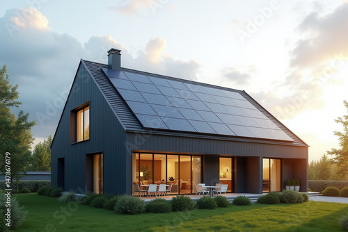 Modern Solar Powered House, Eco Friendly Sustainable Architecture, Clean Energy Living