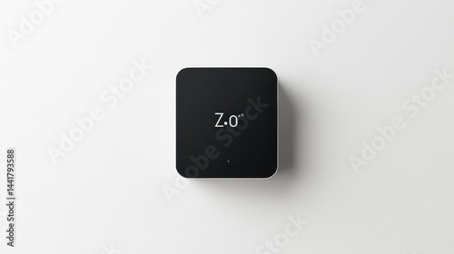 Modern, square digital temperature display device.