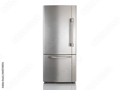 Modern stainless steel refrigerator isolated on transparent background