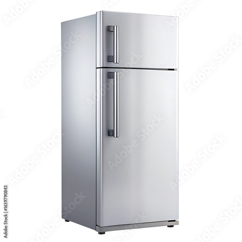 Modern stainless steel refrigerator with sleek design and long handles
