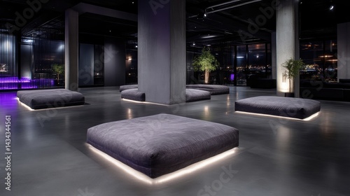 Modern, stylish lounge area with illuminated seating