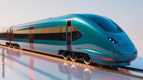 Modern Teal High-Speed Train in Motion