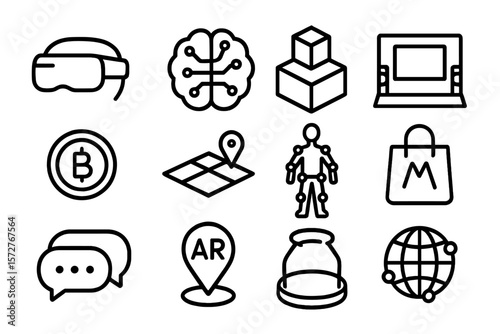 Modern technology icons set: vr, ai, cryptocurrency, and more