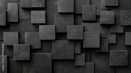 Modern textured wall design featuring black square tiles arranged in a geometric pattern