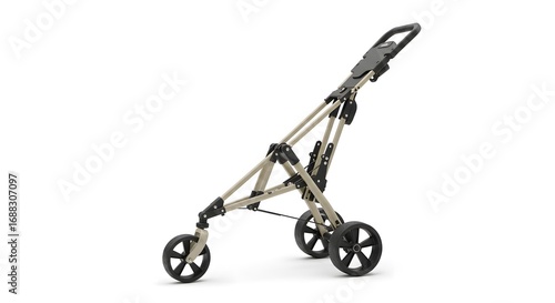 Modern Three-Wheeled Golf Push Cart in Tan Isolated on White Background for Sports and Leisure
