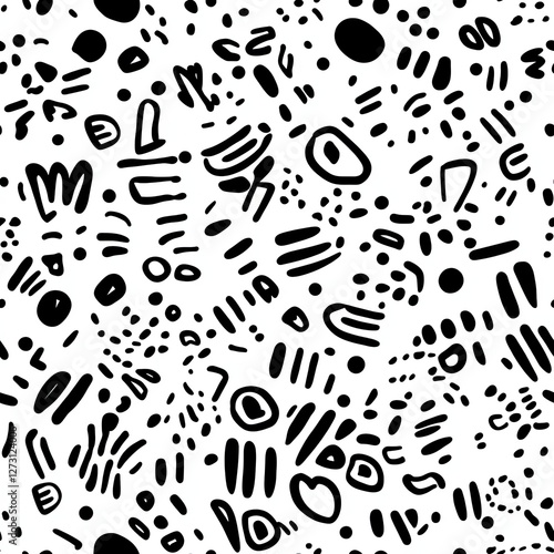 Modern Toile Wallpaper with Playful Abstract Doodles Seamless Pattern