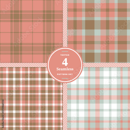 Modern Traditional Madras Red & Traditional Madras Red Seamless Tartan Fabric Design Set of 4