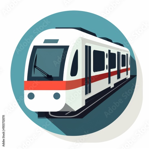 Modern Train Illustration on Circular Background, Featuring a Sleek Design with Bold Colors Perfect for Transportation or Travel-Themed Projects
