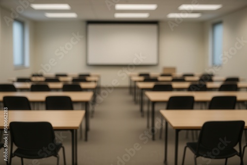 Modern Training Room with Projector and Wooden Tables in Corporate Office Setting for Effective Presentations and Workshops