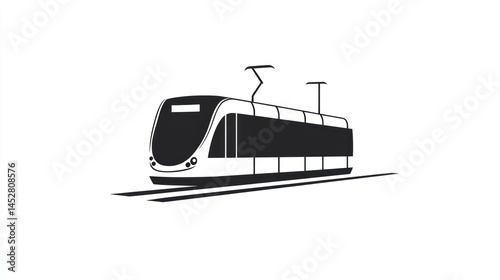 Modern tram transportation icon simple black and white vector graphic illustration