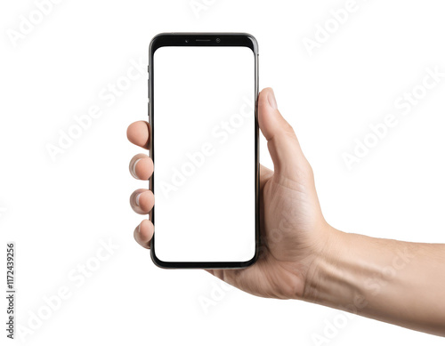 Modern Transparent Smartphone Mockup in Hand - PNG for Custom Backgrounds and Screens.