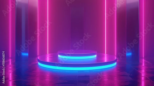 Modern Trendy 3D Design Background with Neon Room