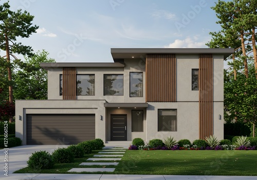 Modern Two-Story House Architectural Design Exterior View with Landscaping