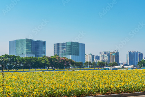 Modern urban architecture, park scenery, and roads in Guangzhou, Guangdong Province, China