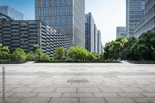 Modern Urban Landscape with Lush Greenery and Skyscrapers