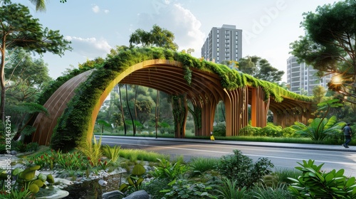 Modern Urban Lifestyle Blending Nature with Architecture in a Lush Green Environment