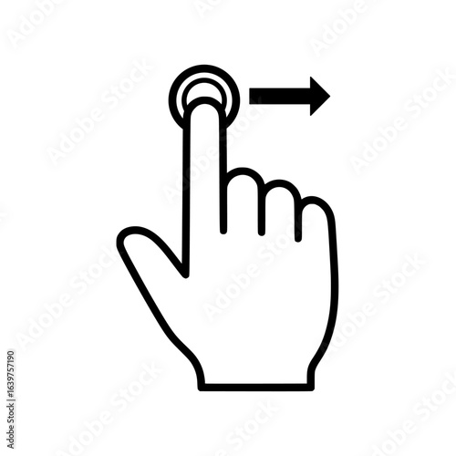 Modern user interface icon depicting a hand performing a swipe right gesture on a touch screen. Ideal for mobile app tutorials and digital instructions.