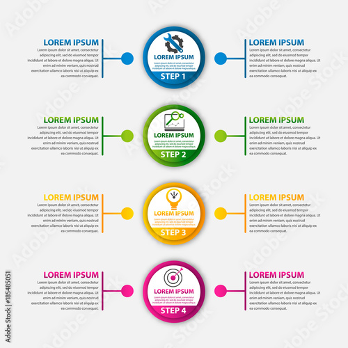 Modern vector illustration 3d. Template circle infographics with four elements and round chart. Designed for business, presentations, web design, diagrams with 4 steps, options, parts or processes