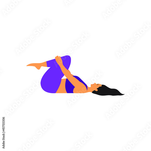 Modern Vector illustration of Stretching Young Woman in Purple Sportswear. Flat, Sport, Training.