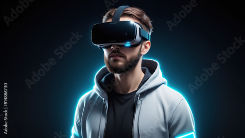 Modern Virtual Reality VR Headset on Man in Hoodie
