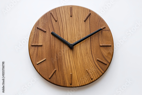 Modern wall clock with a minimalist design on a white backdrop