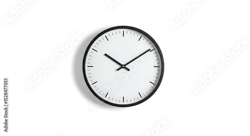 Modern wall clock with minimalistic black and white design, isolated on white background — clean and simple home decor item with no branding