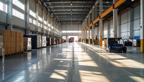 Modern Warehouse Interior with Automated Guided Vehicles and Shadows