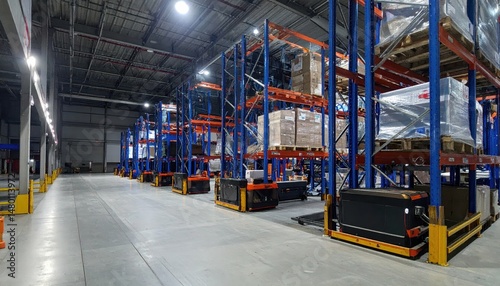 Modern Warehouse Interior with Pallet Racks and Organized Storage Space