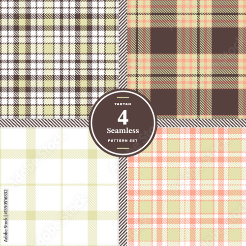 Modern Warm Honey & Rustic Auburn Seamless Tartan Fabric Design Set of 4