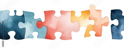 Modern Watercolor Puzzle Representing Diverse Skillsets and Collaboration in a Creative Workspace
