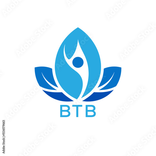Modern Wellness Leaf Logo Design with Human Figure and BTB Letters in Blue Gradient.