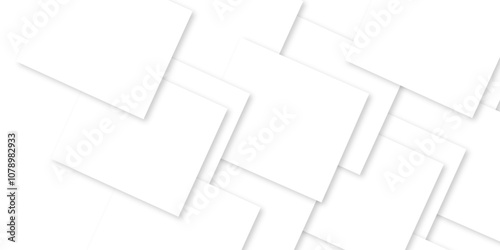 Modern white and gray technology concept diamond triangle geometric line background. Creative design with white boxes and 3d white rectangle business card. soft shadows as pattern, top view. squares.