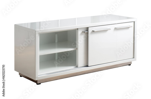 Modern white cabinet showcase minimalist design home interior contemporary style isolated on transparent background, png