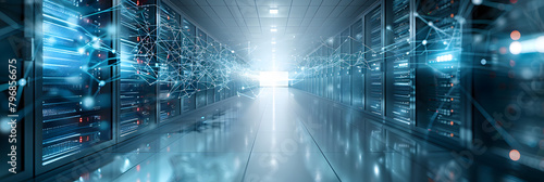 Modern White Canvas with Light Servers and Online Connections - Business Technology Stock