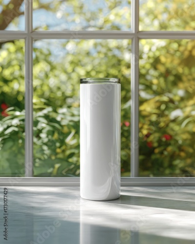 Modern White Ceramic Vessel Standing on White Marble Surface
