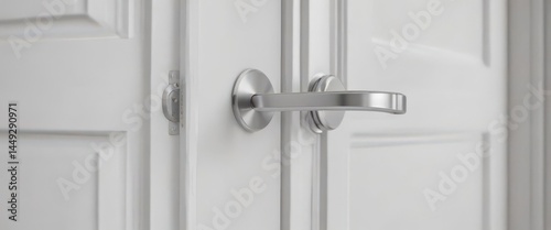 Modern white door, sleek handle Close-up detail , object, surface, studio shot