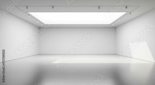 Modern white gallery interior with empty walls and natural light