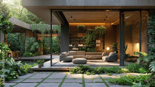 Modern White Home Battery Storage System on Outdoor Wall with Plants and Furniture
