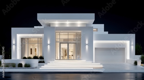 Modern White House Exterior Night Luxury Home Design Architecture