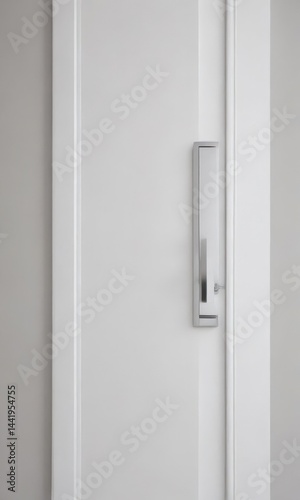 Modern white interior door, sleek handle Close-up view , shape, furniture