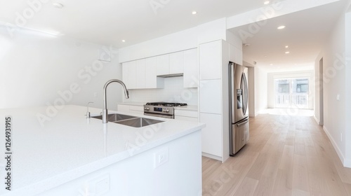 Modern White Kitchen Interior Design Luxury Apartment Open Plan Minimalist Style