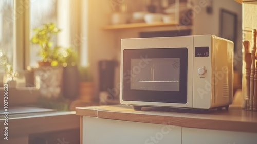 Modern White Microwave Oven on a Wooden Countertop in a Kitchen