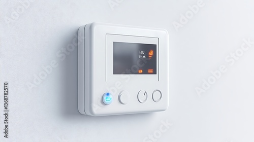 Modern White Smart Home Thermostat Controller on Wall with LCD Display