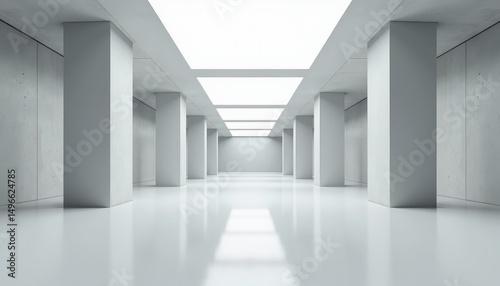 Modern White Space Symmetrical Columns Lining a Bright Reflective Corridor an Empty Architectural Composition
