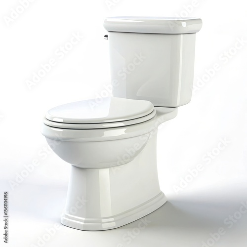Modern white toilet bowl with closed lid isolated on white background for bathroom design