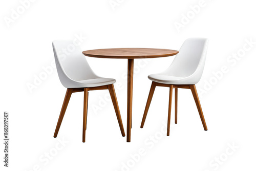 Modern Wooden Dining Table with White Leather Chairs Isolated on PNG